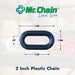 The kit includes: (1) 10-foot length of 2 Inch Plastic Chain and (2) 2 Inch S-Hooks, allowing you to easily hang the chain between posts, stanchions, or fixtures.